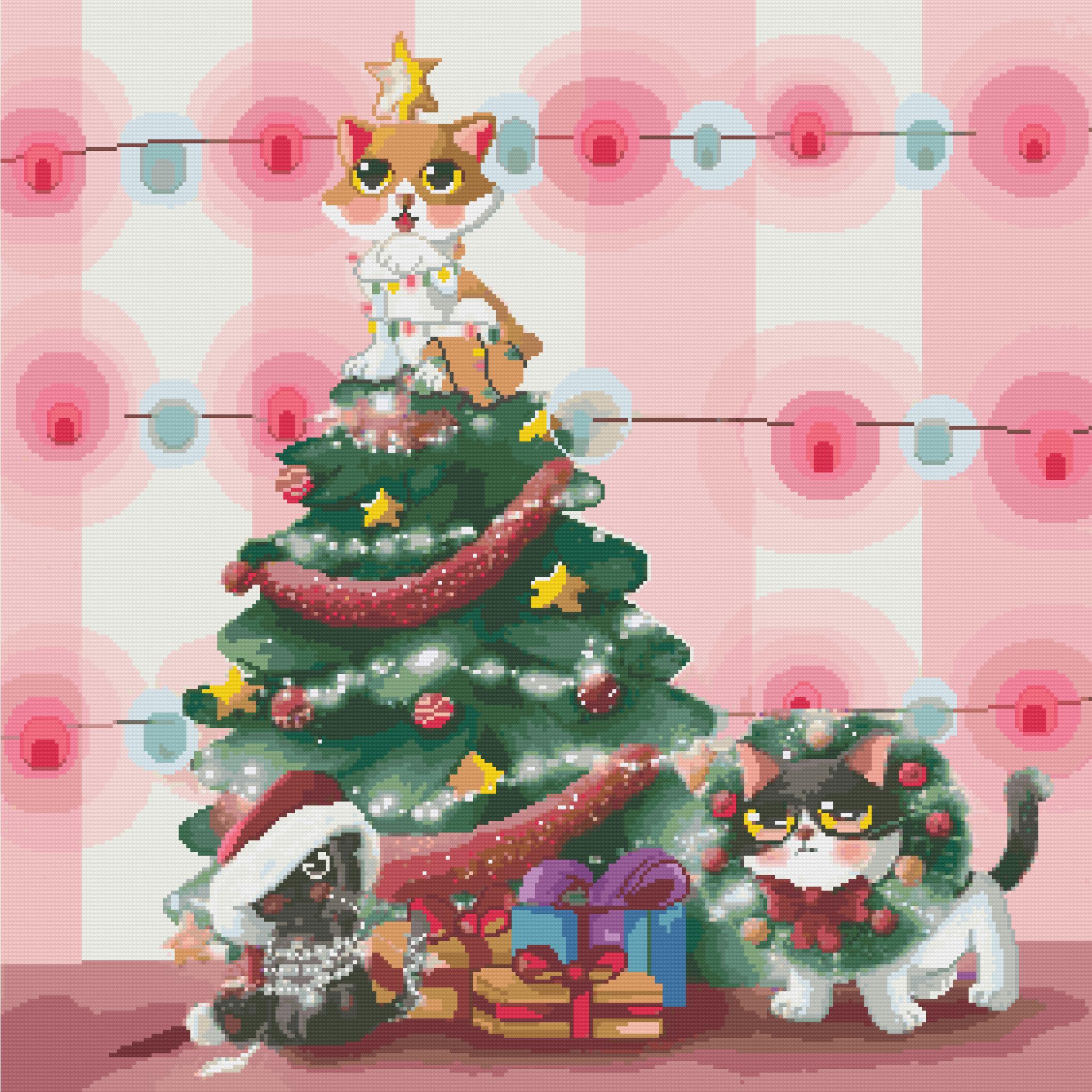 Entre adornos, luces y disfraz los tres gatitos se divertirán.